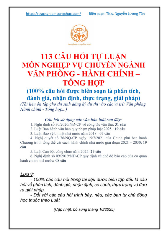 1. Nghị định số 30/2020/NĐ-CP về công tác văn thư: 31 câu